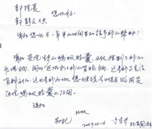病人在来信中表达康复后的喜悦和对我院郭大夫的感谢: