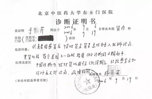 1999年,患者因尿路感染引起了肾盂肾炎,尿中出现血尿蛋白。经当地治疗,给服呋喃坦啶消炎药一年,病情时好时犯。遂回国内在北京中医药大学东直门医院住院一月,病情好转。